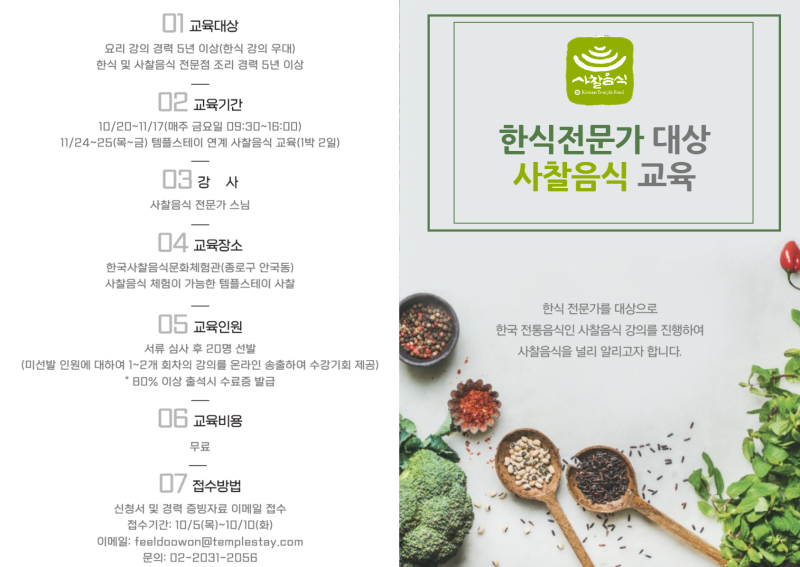 1.교육명 : 한식전문가 대상 사찰음식 교육