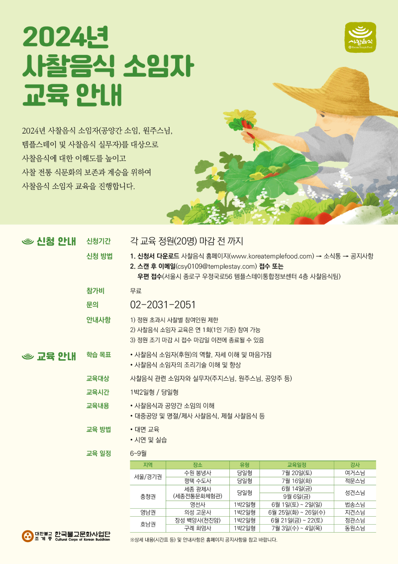 아. 교육문의 : 02-2031-2051 (사찰음식팀 최소영 행정관)