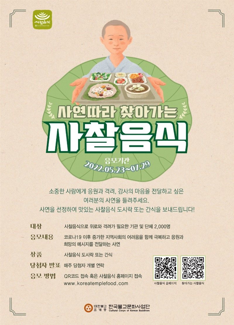 사찰음식 인스타그램 계정의 <2022 사연따라 찾아가는 사찰음식 공유이벤트> 페이지를 공유해주세요!